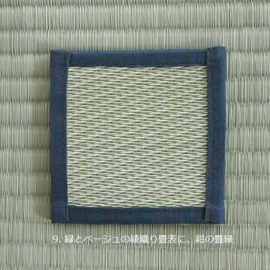 9. 緑とベージュの綾織り畳表に、紺の畳縁(3枚)