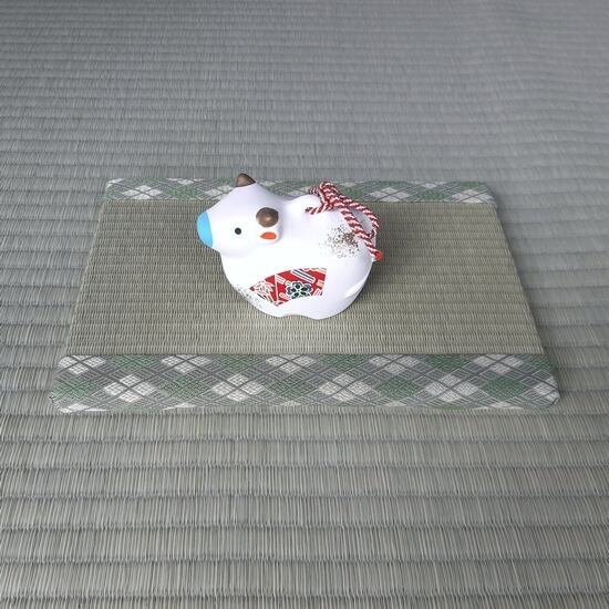 畳縁は緑色のアーガイル模様